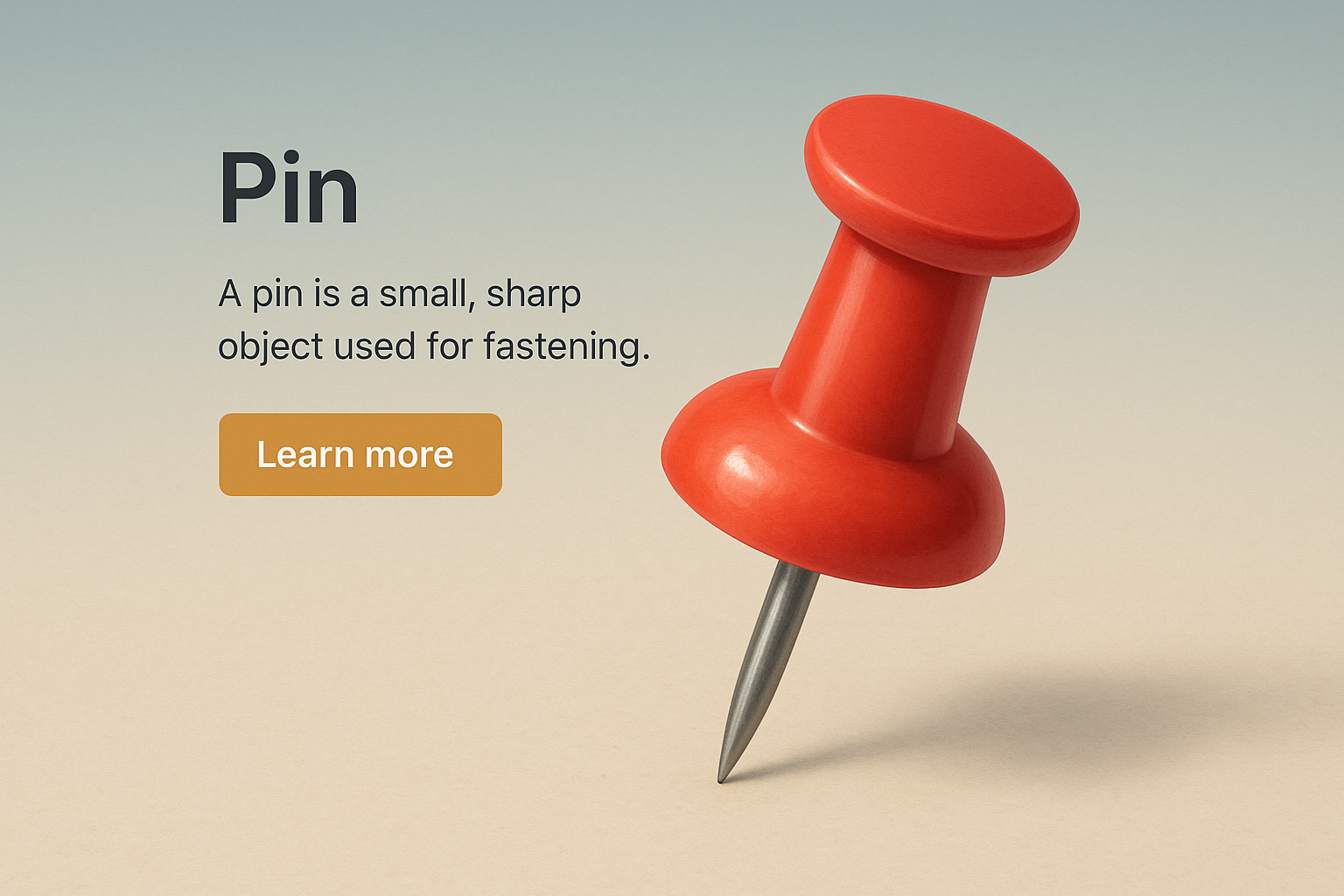 /Collection: /by davooda/Type: PNG/A visually appealing, zoomed-out 3D illustration of a red pin set against a smooth gradient background. Accompanied by a concise description and a call-to-action button.
