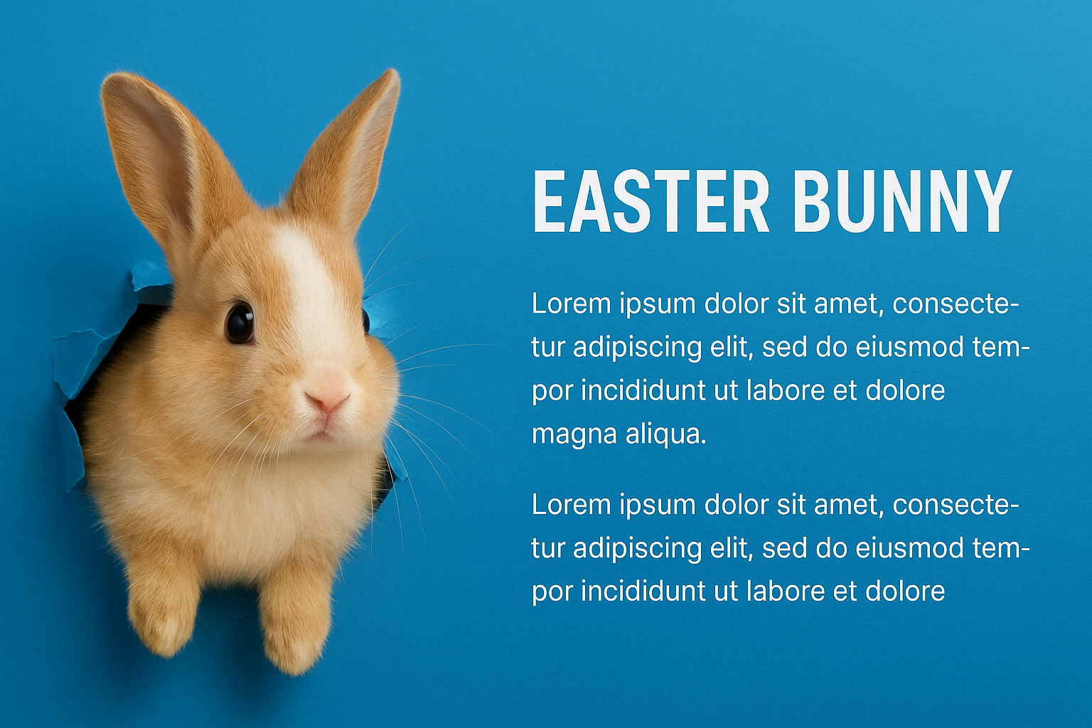 Cute Rabbit Breaking Through Blue Background with Text Overlay