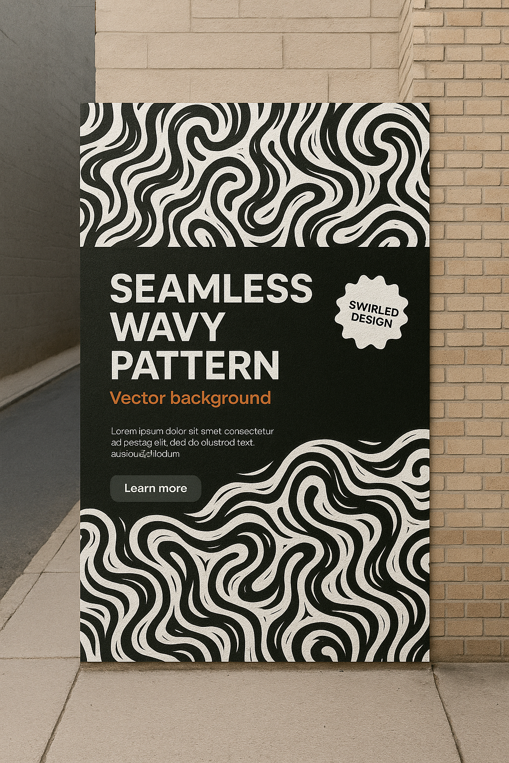 A bold and dynamic seamless pattern featuring wavy and swirled brush strokes in black and white. The design is engaging and modern, perfect for various creative projects.