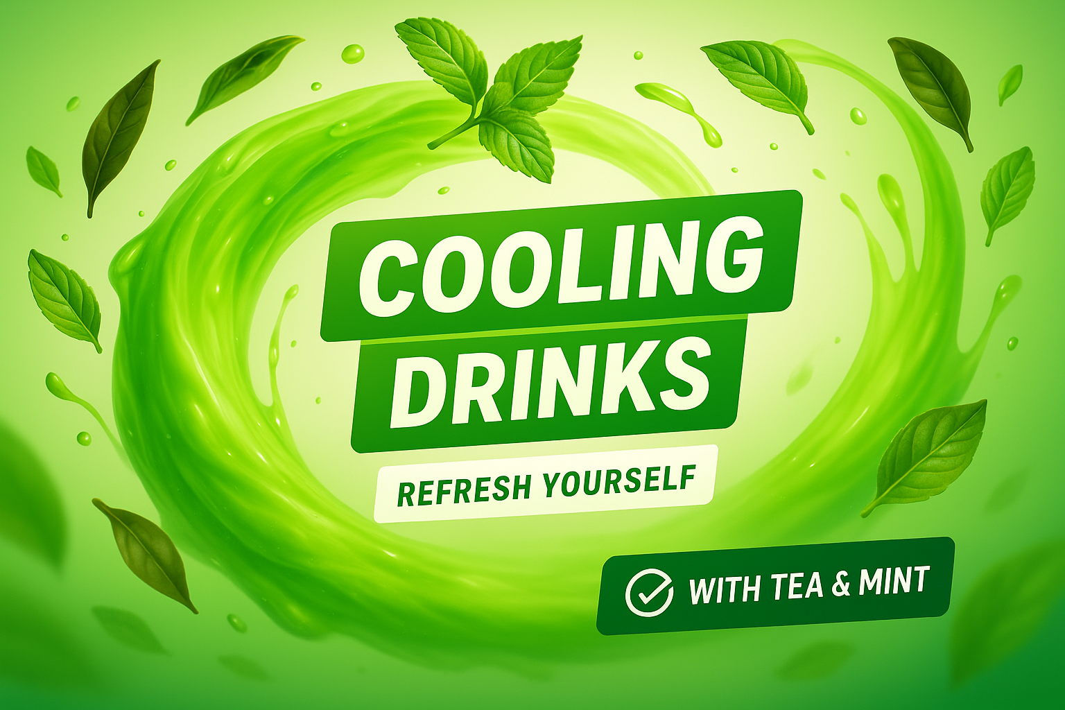 Vibrant Promotional Graphic for Cooling Drinks with Tea and Mint