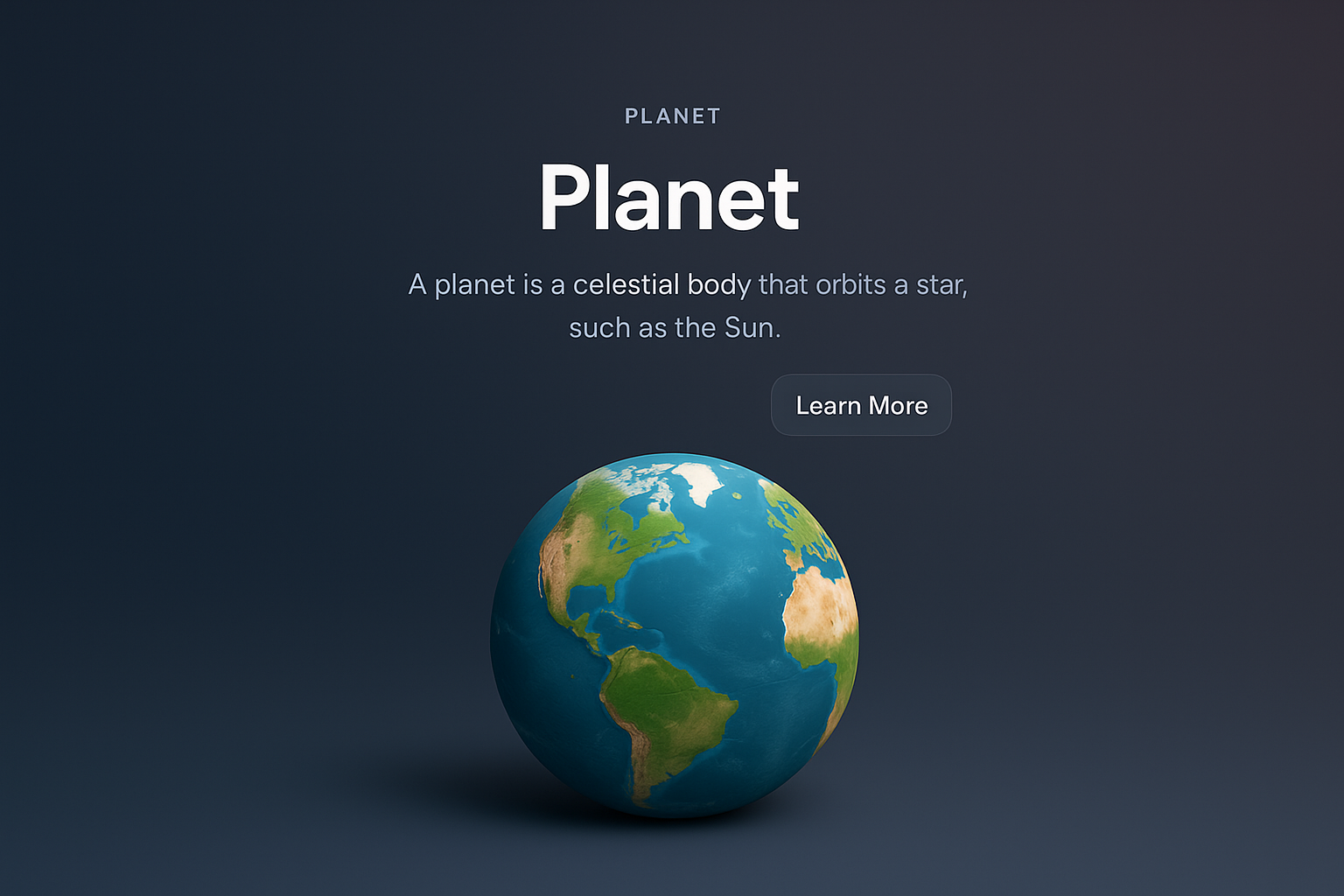 /Collection: /by davooda/Type: PNG/A visually rich 3D illustration of a small planet set against a dark gradient background. It features a globe with detailed landmasses and text elements including a title and description.