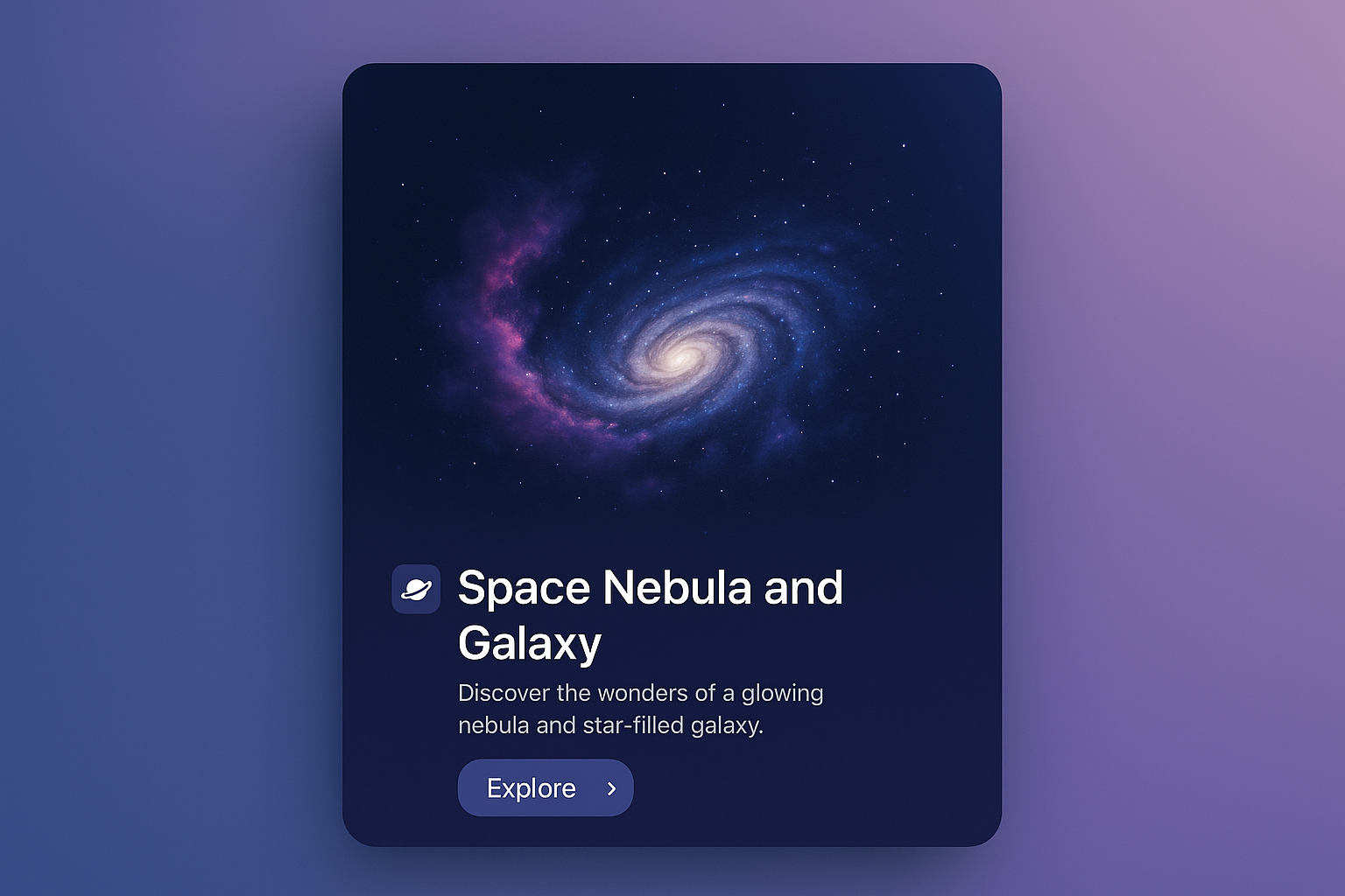 A captivating 3D representation of a space nebula and galaxy, featuring a smooth gradient background and vibrant celestial colors. The design highlights cosmic wonders from a distant perspective.