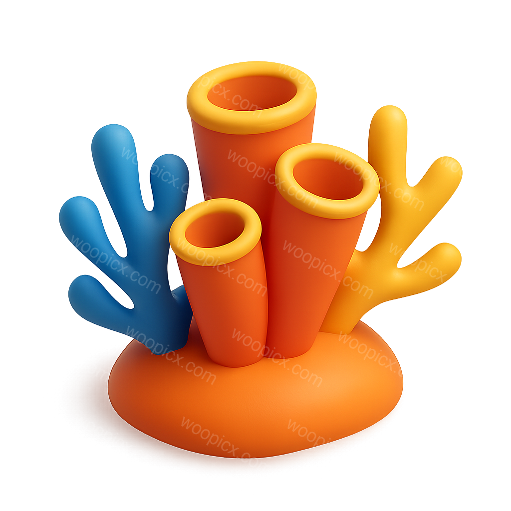 Stylized 3D Coral Reef Icon with Volumetric Design