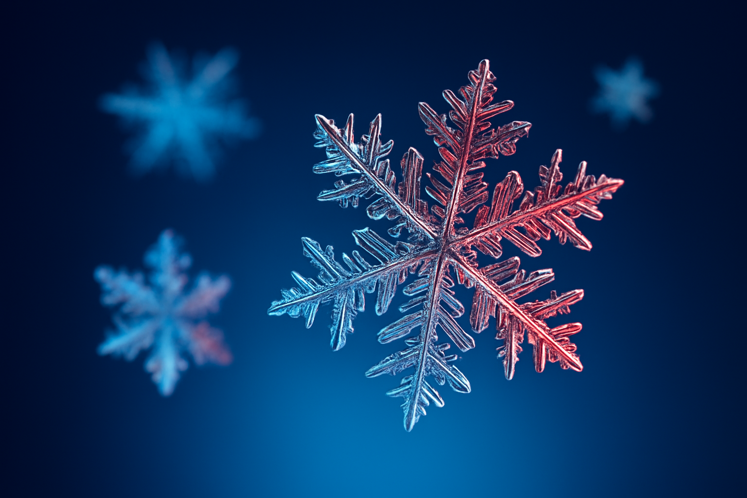/Collection: /by davooda/Type: PNG/A stunning macro photograph showcasing a variety of realistic snowflakes against a smooth blue background. The snowflakes are illuminated from both sides, enhancing their intricate crystal structures.