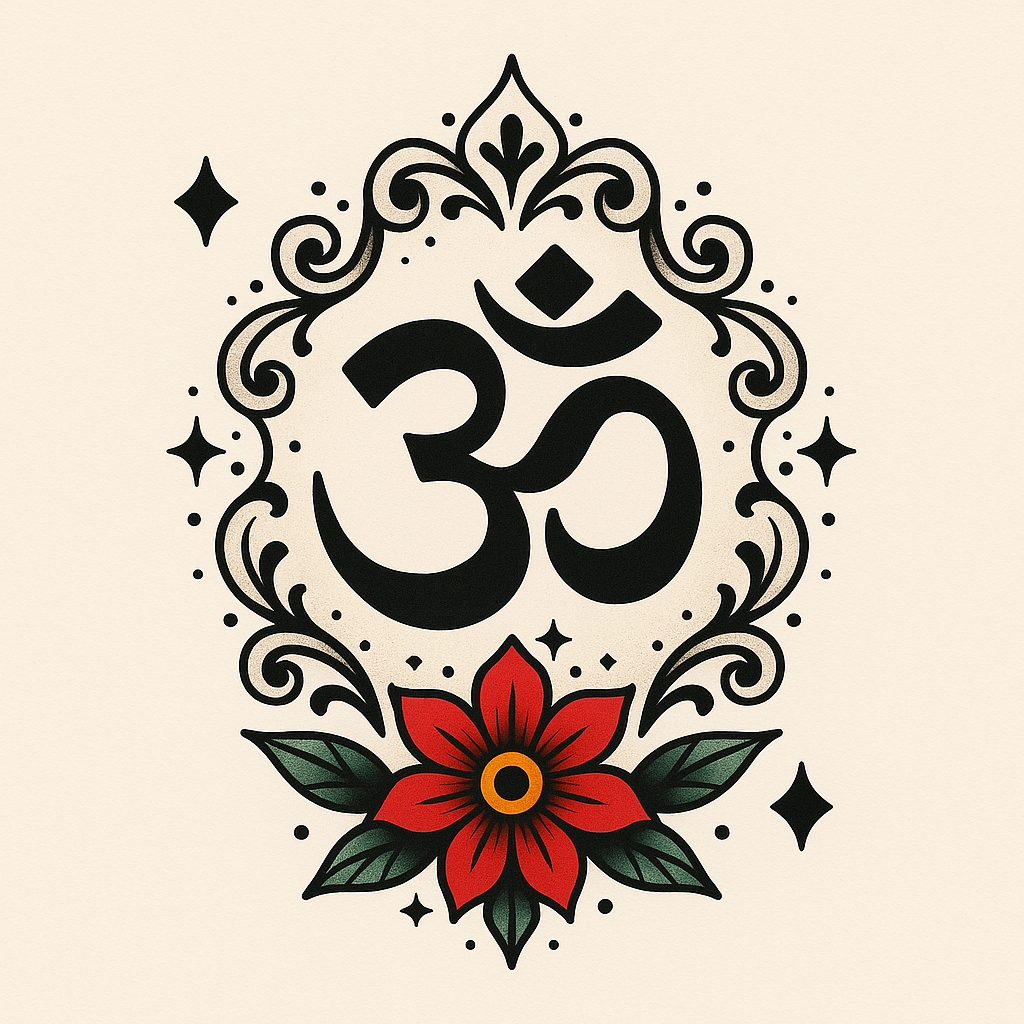A beautifully crafted illustration featuring the Om symbol surrounded by intricate floral designs, suitable for spiritual themes and artistic expression.