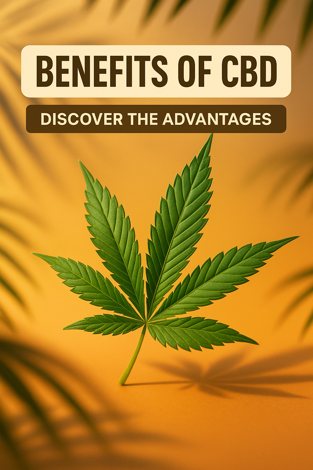 A visually appealing promotional image showcasing a cannabis leaf against a warm gradient background, emphasizing the advantages of CBD. Ideal for health and wellness marketing.