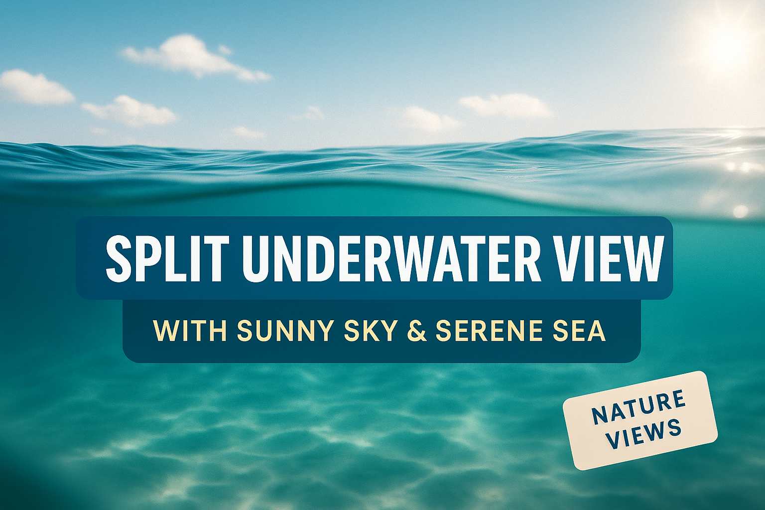 /Collection: /by davooda/Type: PNG/A captivating split underwater view showcasing a tranquil sea beneath a sunny sky. The design features clear text and a soothing color palette perfect for a YouTube thumbnail.