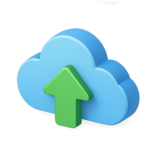A visually appealing 3D icon representing cloud storage with an upward arrow, ideal for applications related to file sharing and digital storage.
