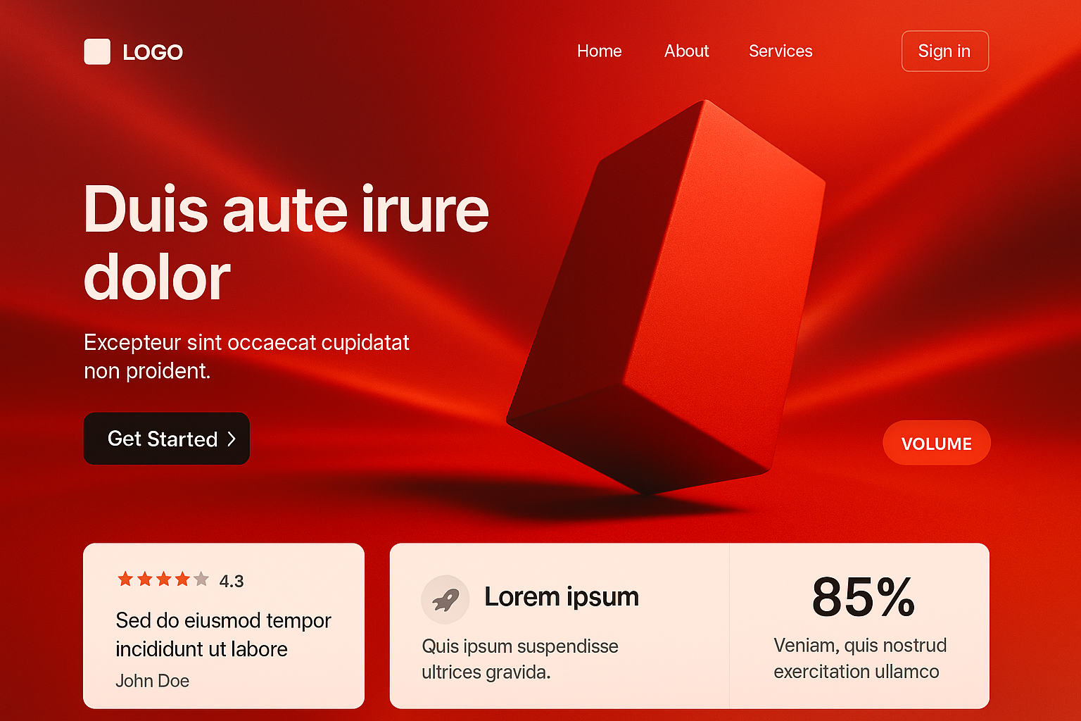 /Collection: /by davooda/Type: PNG/A striking minimalist landing page layout featuring a geometric logo, action button, and engaging content blocks. The vivid red gradient background enhances the dynamic visuals.