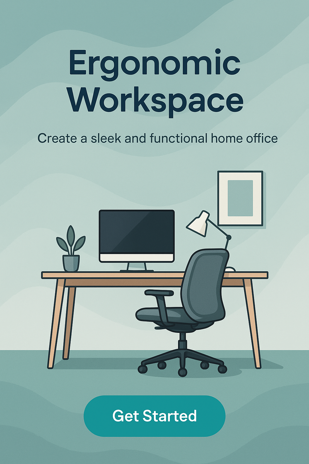 Stylish promotional graphic for an ergonomic workspace featuring a desk setup, ideal for marketing home office solutions to remote workers.