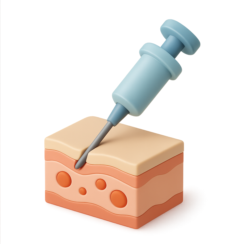 A visually engaging 3D icon depicting a syringe extracting a sample from a tissue slice, showcasing a three-quarter isometric view with a soft color palette.