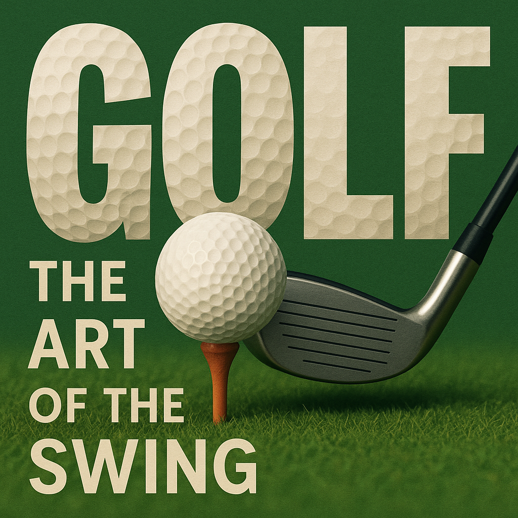 A visually striking graphic showcasing the theme of golf, featuring a golf ball on a tee with a club, ideal for sports marketing or golf instruction content.
