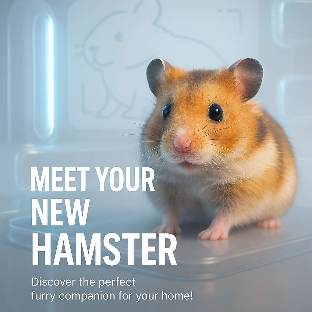 Charming promotional image showcasing a cute hamster, designed to attract potential pet adopters. Ideal for pet stores or adoption events.