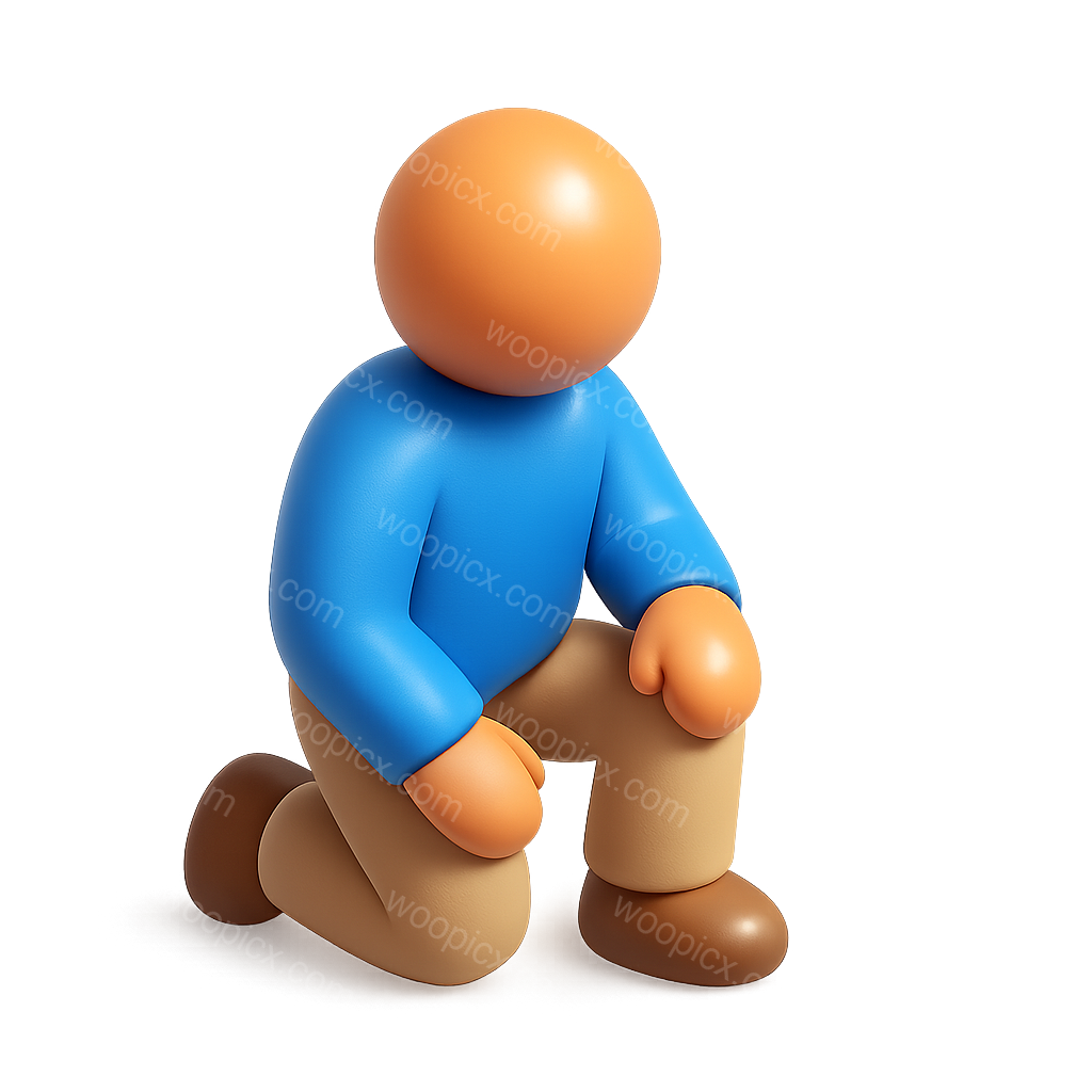 /Premium/Collection: /by davooda/Type: PNG/A vibrant 3D icon depicting a person in a kneeling position, featuring a rounded head, blue shirt, and beige pants, all with a smooth, volumetric design.