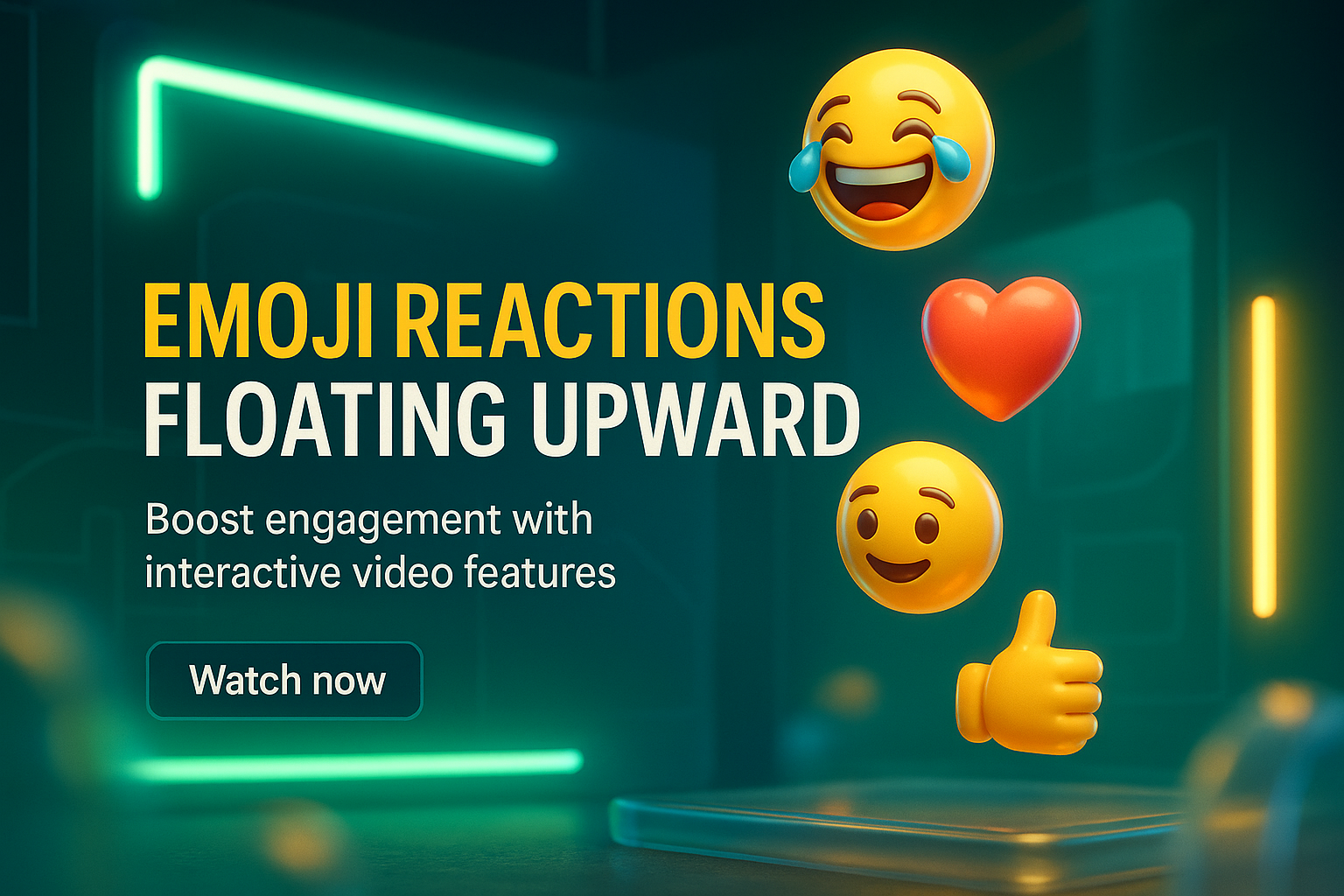 /Collection: /by davooda/Type: PNG/Vibrant social media graphic showcasing floating emojis to enhance user engagement, designed for promoting interactive video features with a modern aesthetic.