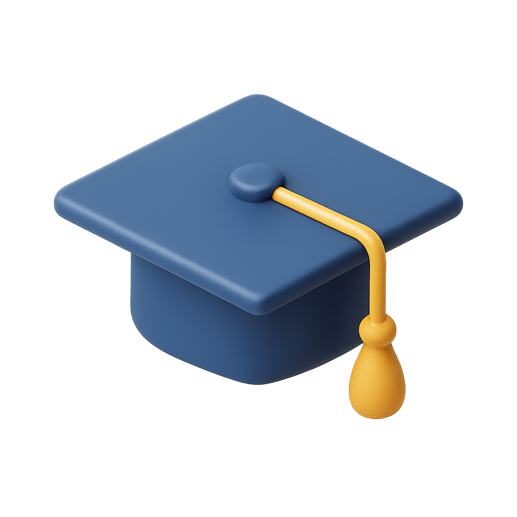 Stylized 3D Graduation Cap Icon with Isometric View