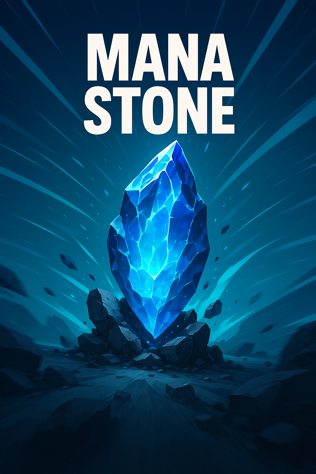 /Collection: /by davooda/Type: PNG/A visually striking 3D illustration of a mana stone, radiating energy with dynamic lines and a smooth gradient background. The bold title emphasizes the stone's significance.