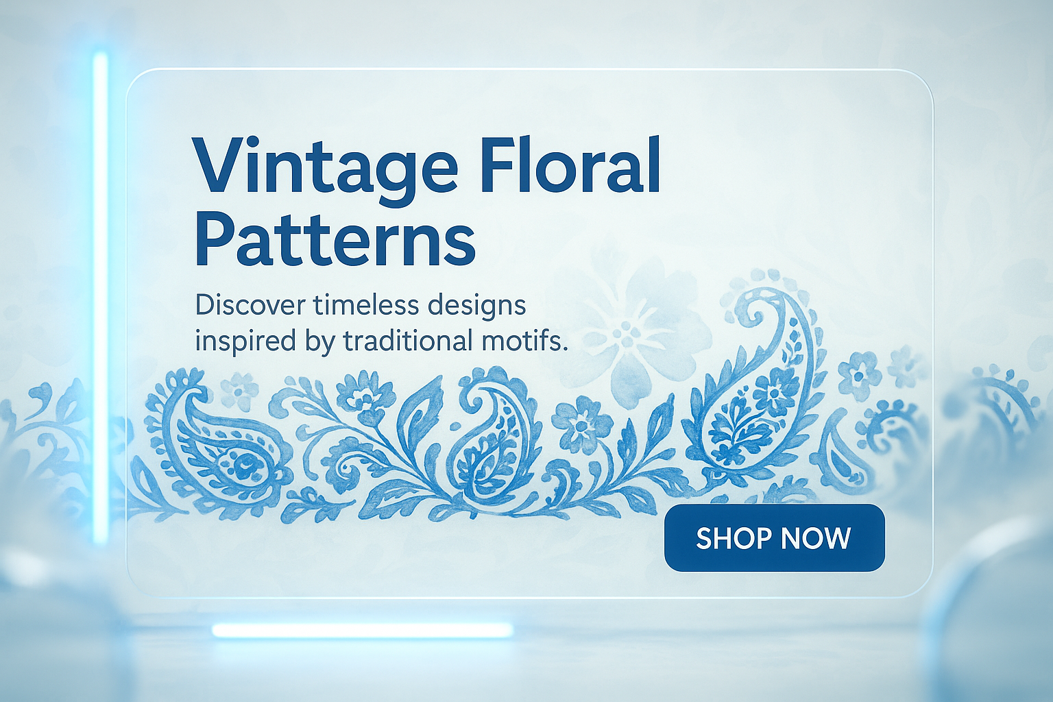 Stylish promotional banner showcasing vintage floral patterns with a modern design twist. Ideal for website or social media marketing.