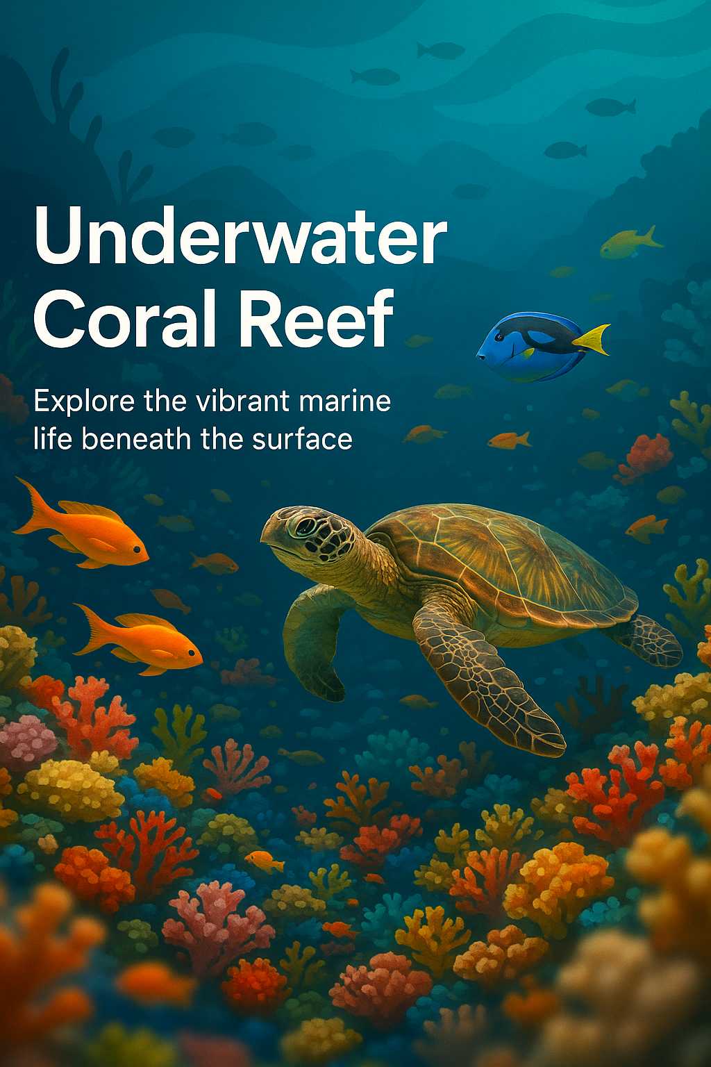 Vibrant Ocean Coral Reef Scene with Call to Action