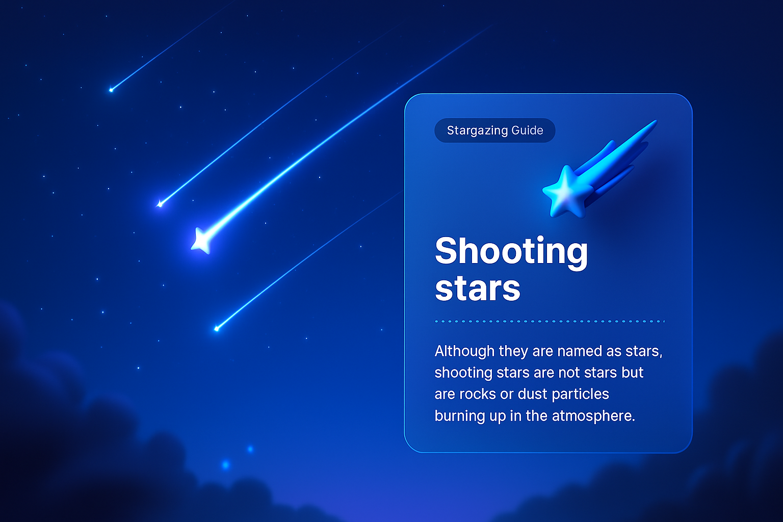 A captivating 3D illustration of shooting stars streaking across a rich blue night sky. The design includes informative text about shooting stars, creating a dynamic visual experience.