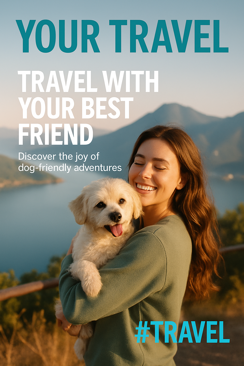 Promotional Travel Guide for Dog Owners Featuring Scenic Outdoor Adventure