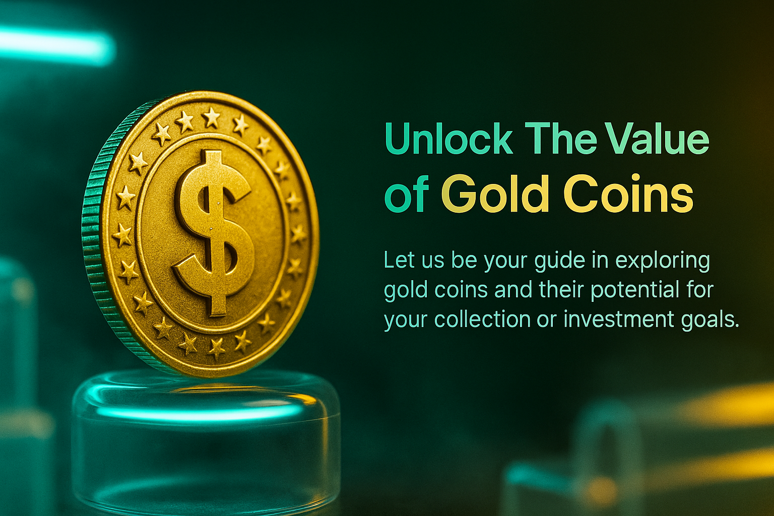 A striking visual featuring a gold coin illuminated by neon accents. The composition highlights the coin while providing a message about its value, set against a deep green background.