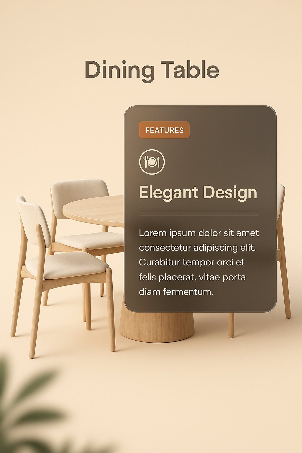 /Collection: /by davooda/Type: PNG/A modern dining table scene featuring a stylish design with integrated feature blocks. The light-tone image showcases a smooth gradient background and clear text elements.