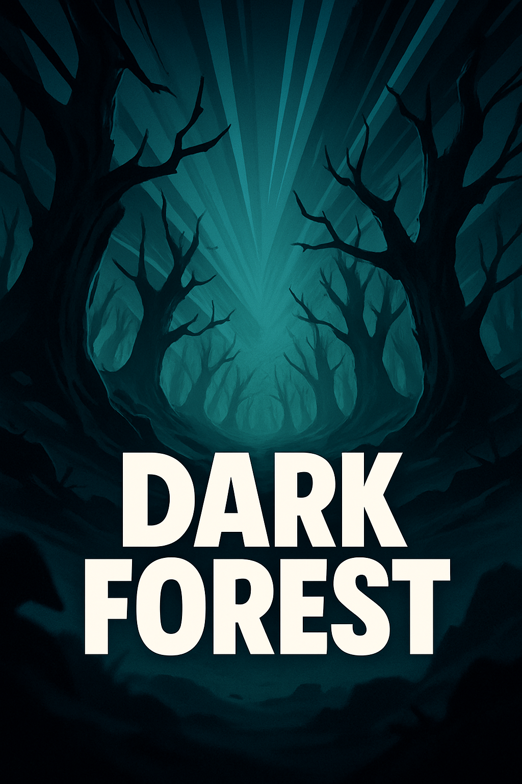 /Collection: /by davooda/Type: PNG/A captivating dark forest scene featuring dynamic lines radiating from the center, creating an intense atmosphere. The bold title 'DARK FOREST' stands out against a gradient background, enhancing the depth and drama of the composition.