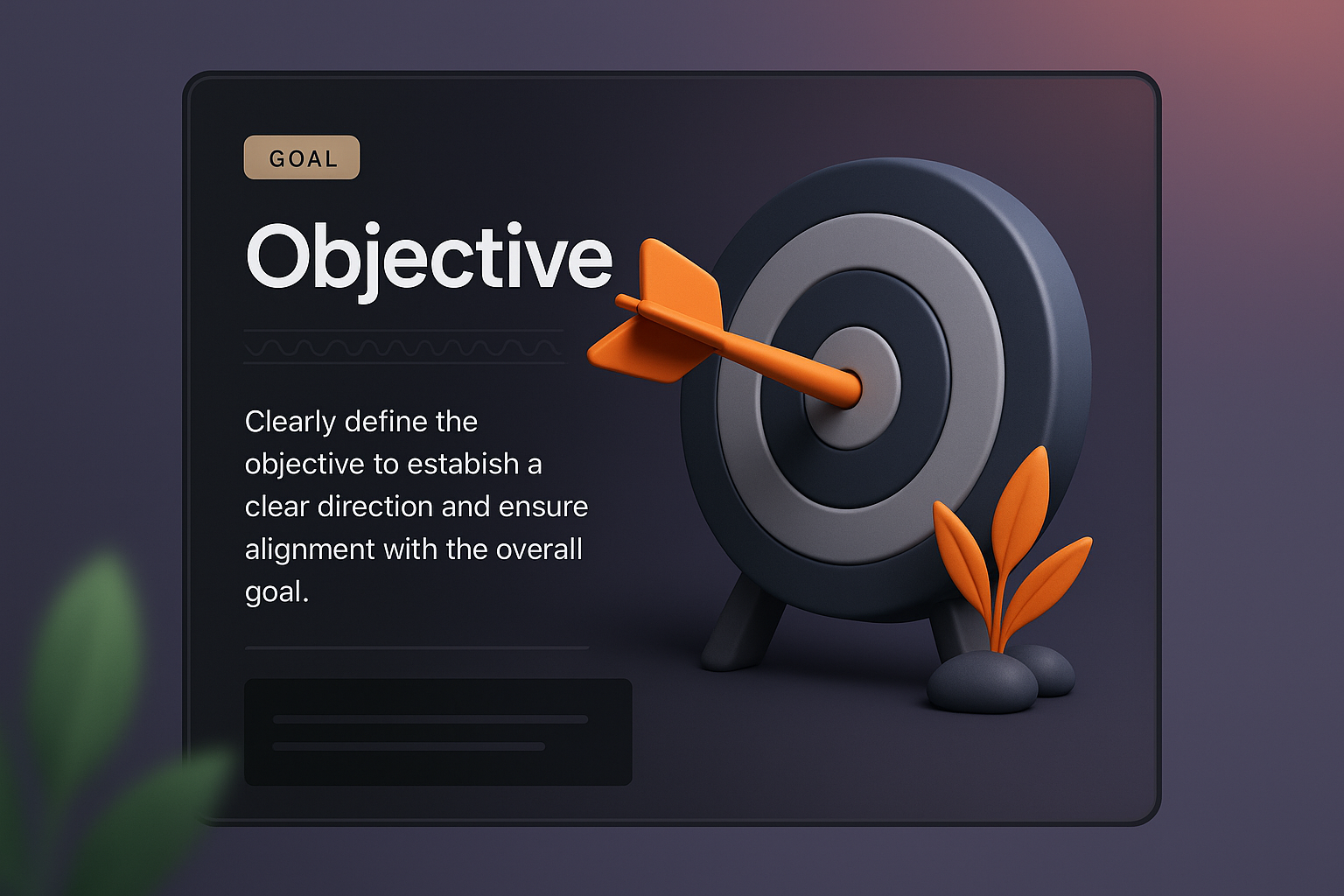 A visually striking 3D web page design showcasing a target with a dart hitting the bullseye, surrounded by decorative elements. The layout includes text blocks and a dark label for enhanced readability.