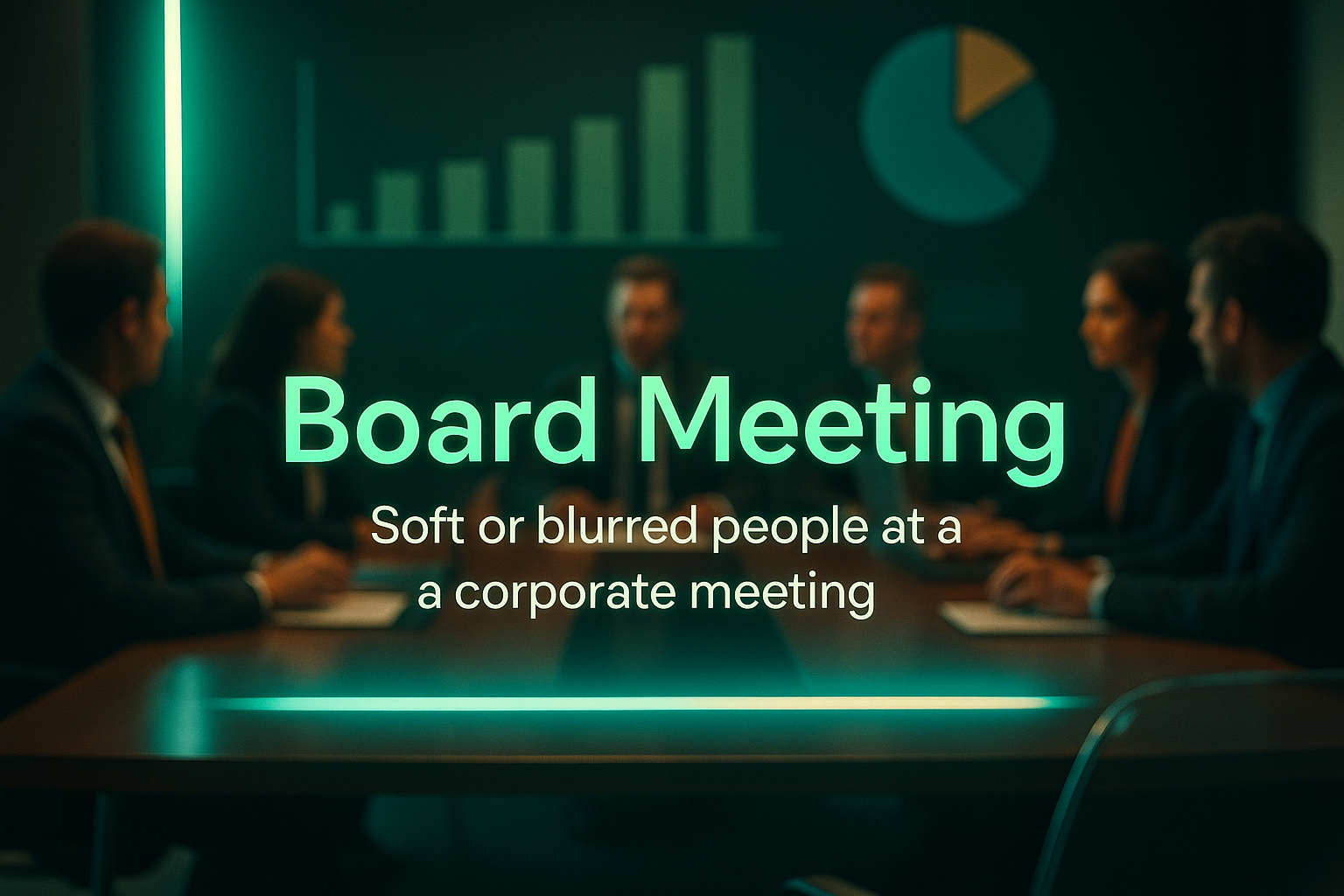/Collection: /by davooda/Type: PNG/A professional corporate setting featuring a board meeting with soft-focused individuals engaged in discussion. The visual style conveys a modern and serious atmosphere suitable for business presentations.