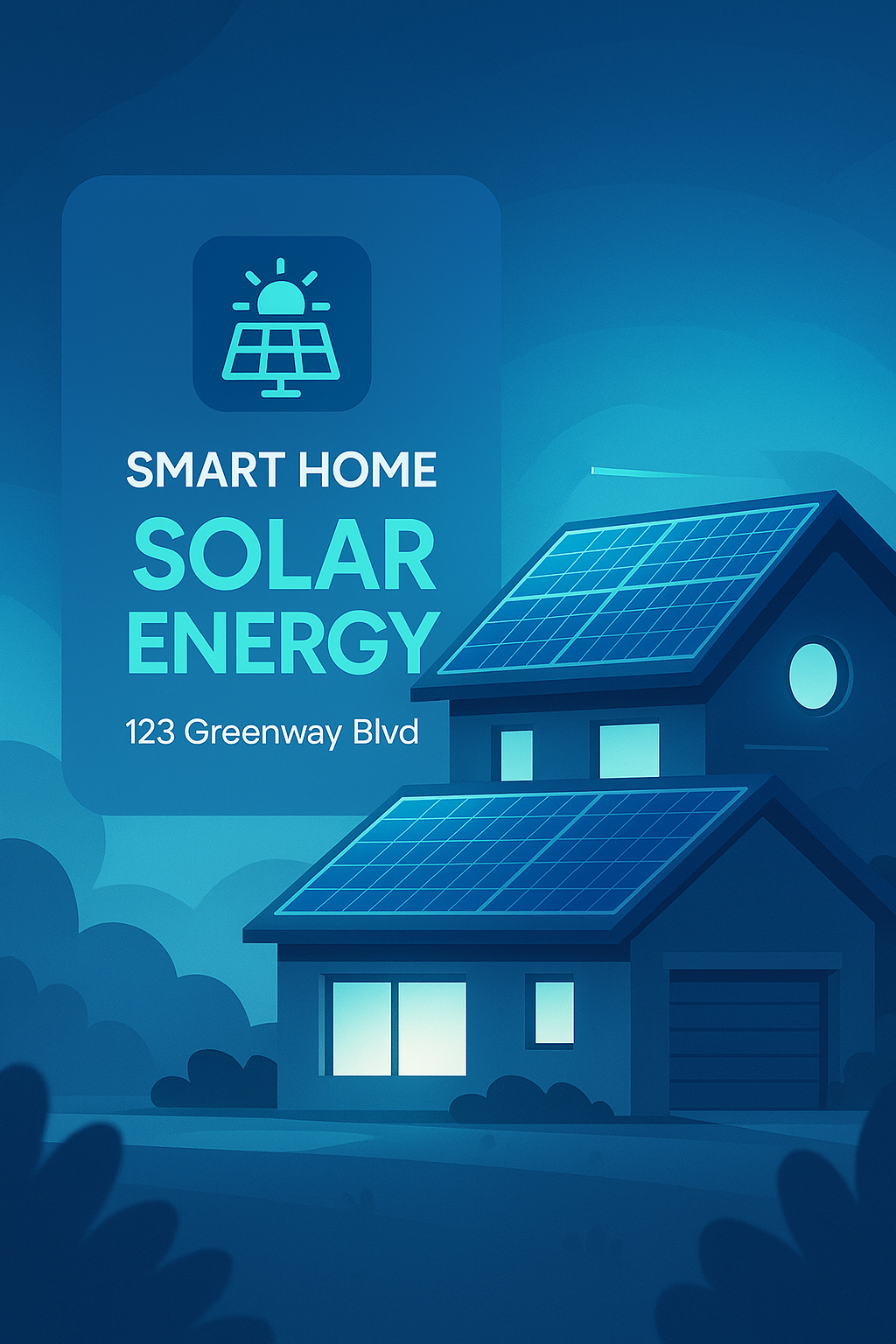 A modern graphic illustration of a house with solar panels, designed to promote solar energy solutions. Ideal for marketing materials targeting eco-conscious homeowners.