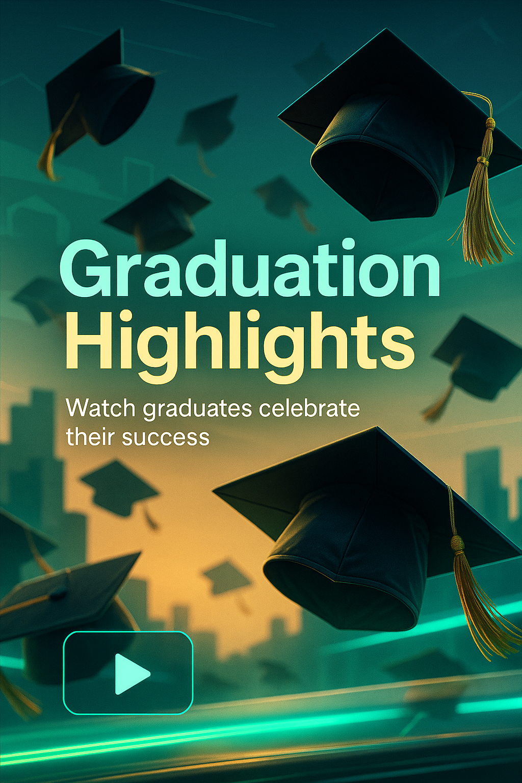 Vibrant graphic showcasing graduation caps in motion, ideal for promotional content celebrating student achievements. The modern design elements appeal to educational institutions and event organizers.