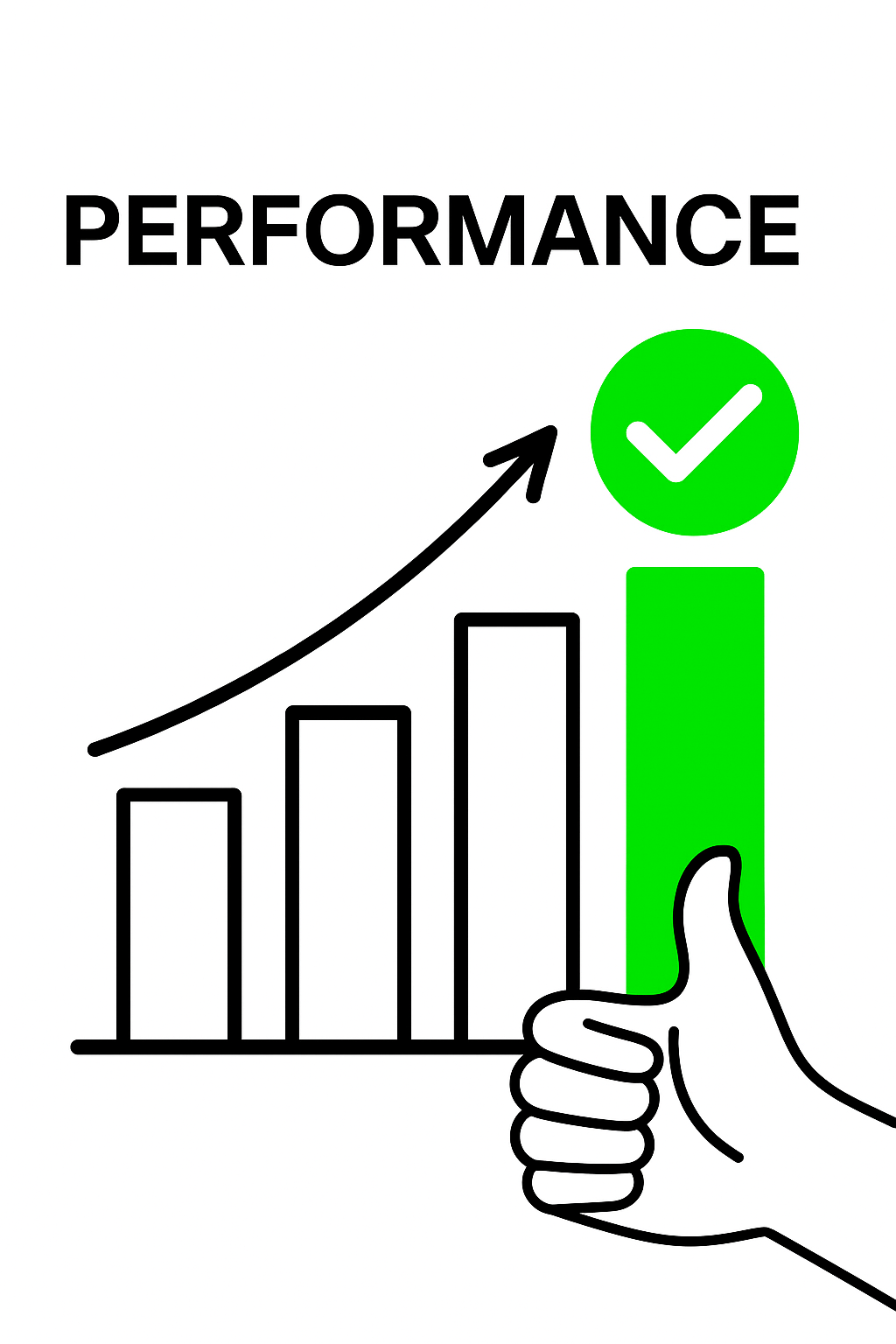 Illustrative graphic showing a performance growth chart with an upward trend and a thumbs-up hand, ideal for business presentations and reports.