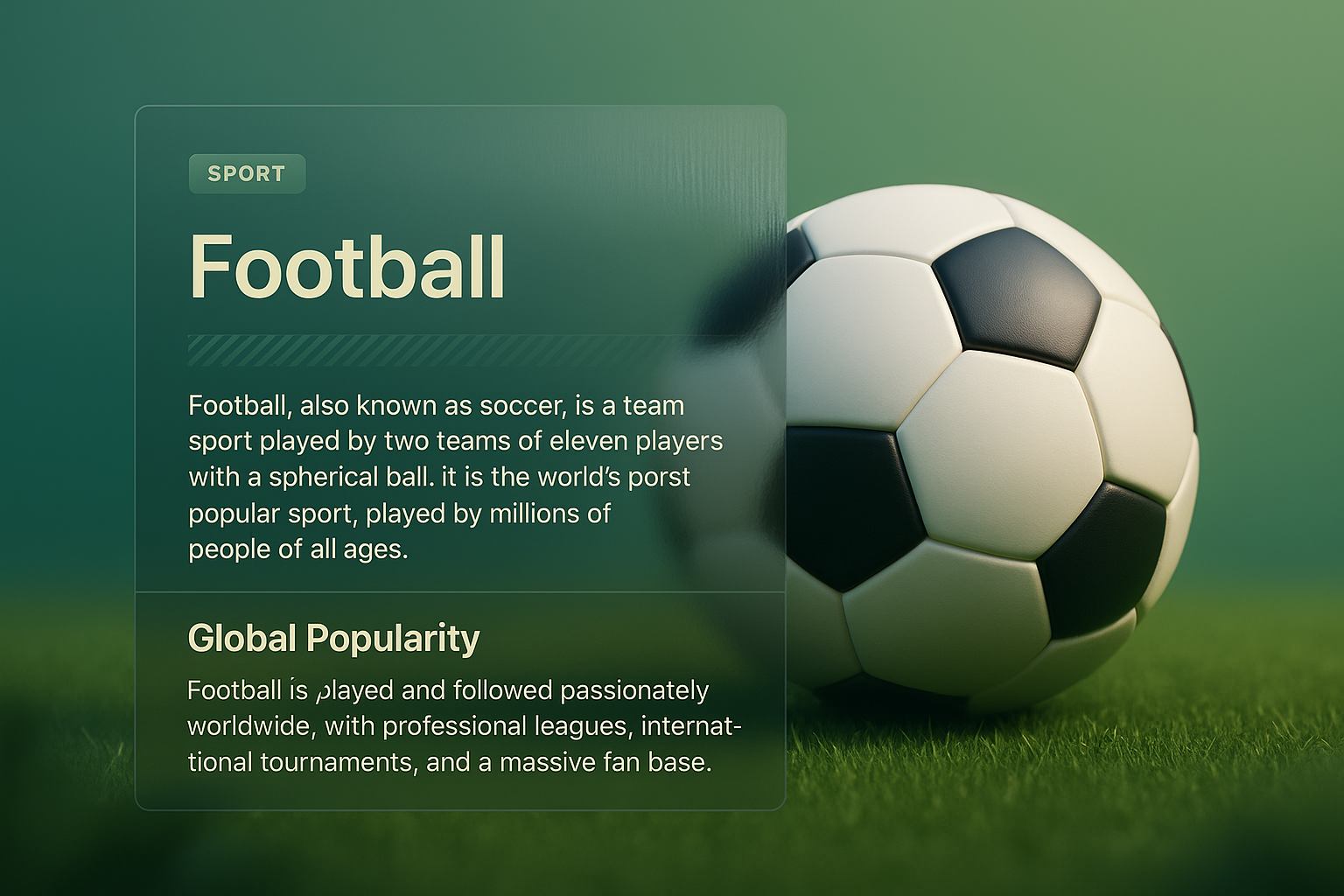 3D Soccer Design with Transparent Overlay and Text Blocks