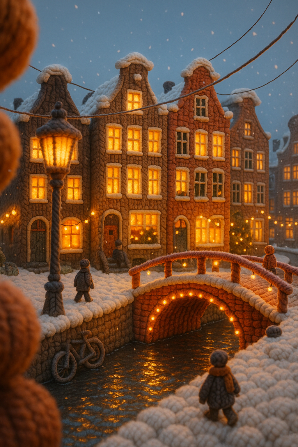 Winter Wonderland in Knitted Amsterdam: A Cozy Scene