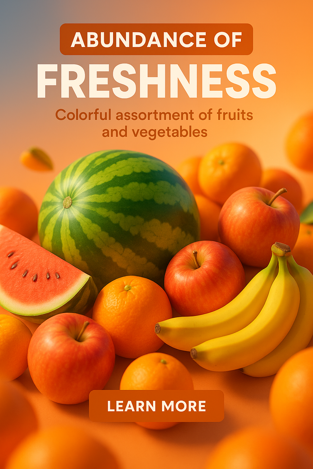 Vibrant Display of Fresh Fruits and Vegetables for Promotion