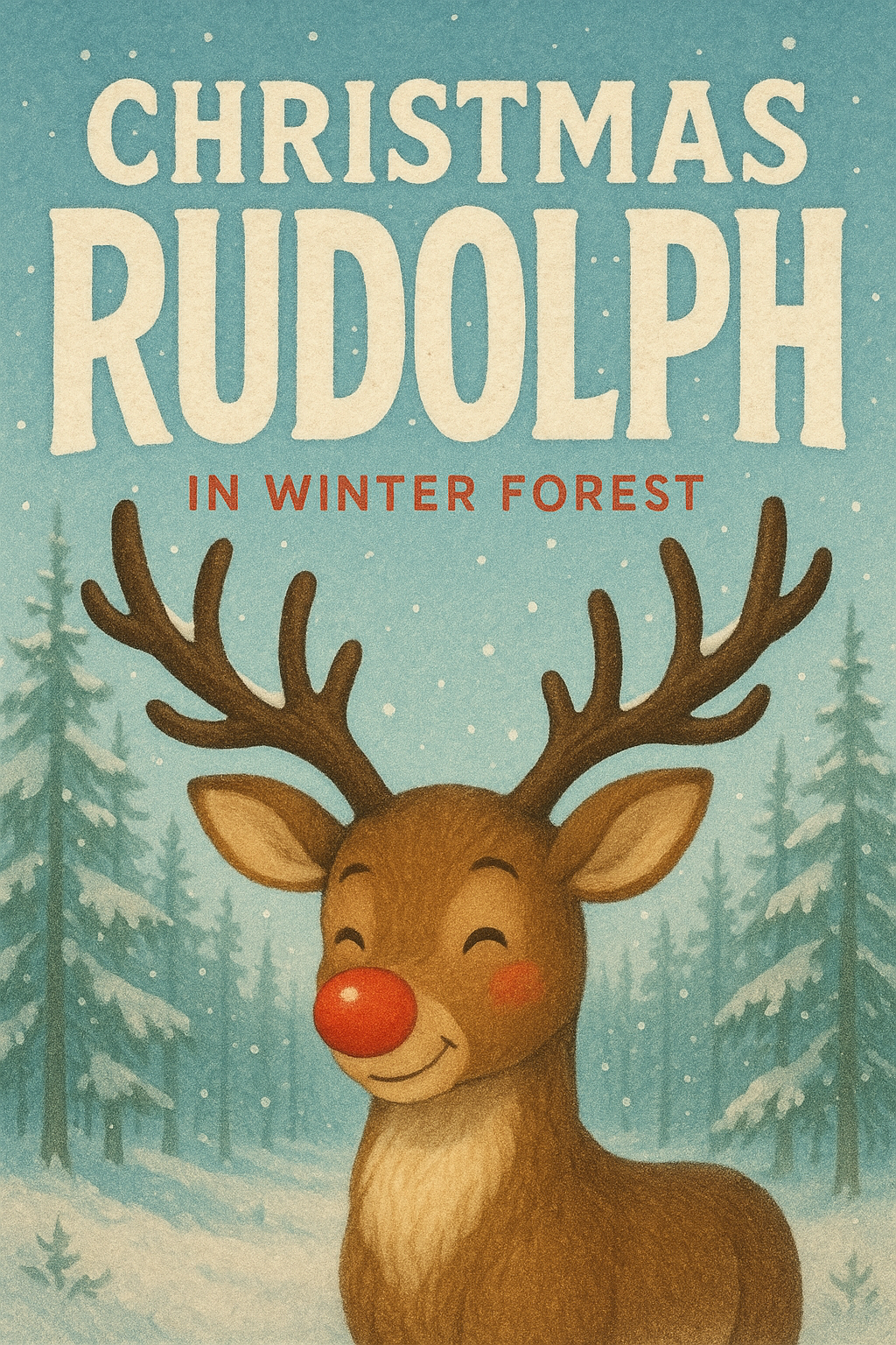 Charming Christmas Illustration of Rudolph in a Winter Forest