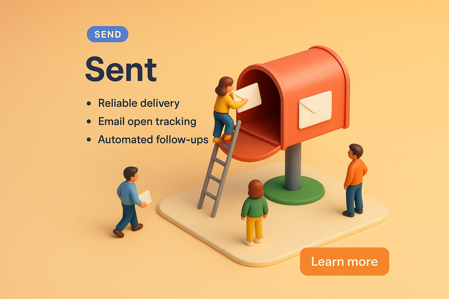 /Collection: /by davooda/Type: PNG/A detailed 3D scene depicting tiny characters interacting with a bright red mailbox. The background features a smooth gradient, creating a vibrant, engaging atmosphere. Text elements are clear and well-integrated.