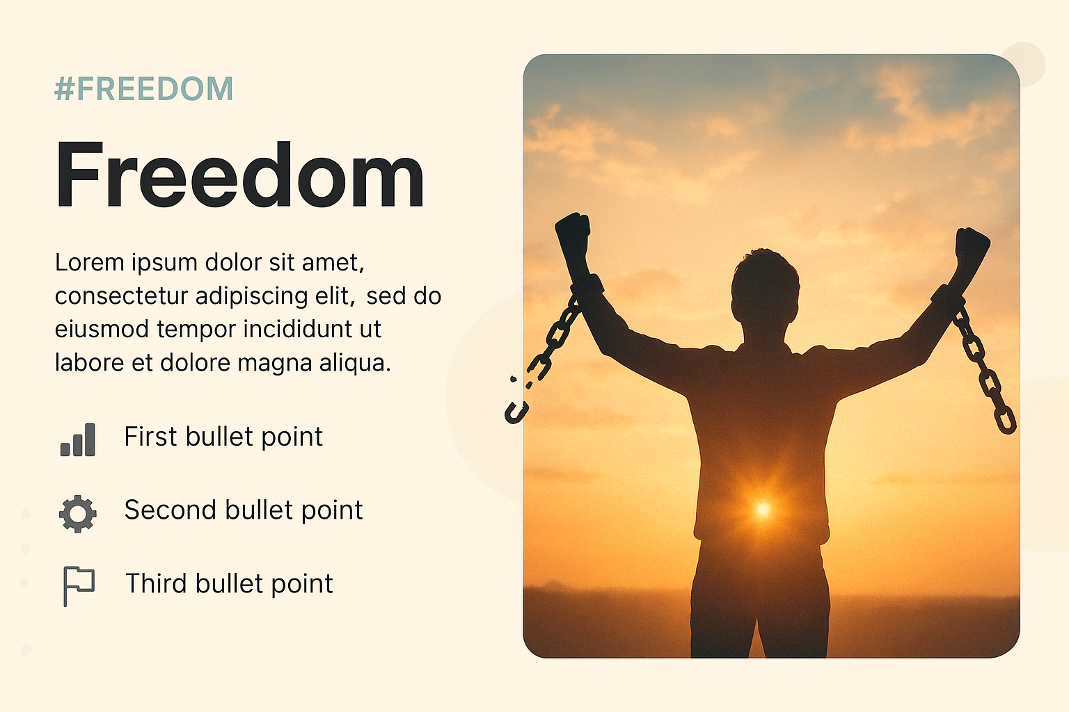 /Collection: /by davooda/Type: PNG/A motivational graphic featuring a silhouetted figure breaking free from chains against a sunset backdrop. Ideal for empowerment themes in presentations or social media.