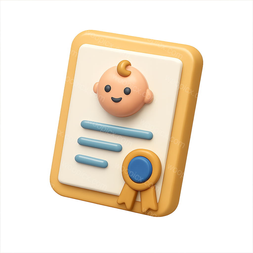 Stylized 3D Birth Certificate Icon with Baby Face