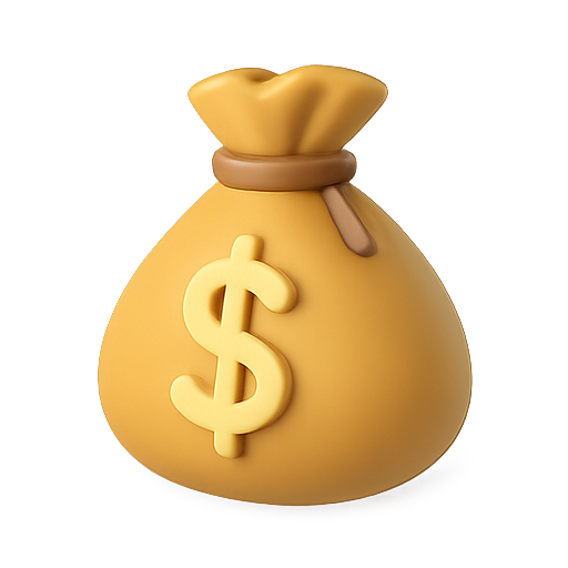 Stylized 3D Money Icon with Bag and Rising Coins
