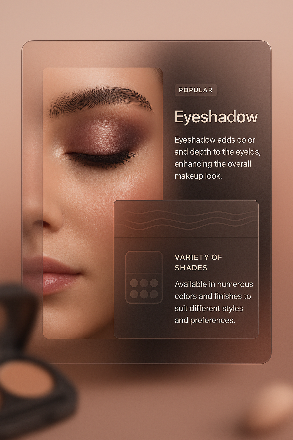 /Collection: /by davooda/Type: PNG/A stylish 3D illustration showcasing eyeshadow application, featuring a translucent overlay with informative text and icons. The gradient background enhances the visual appeal.