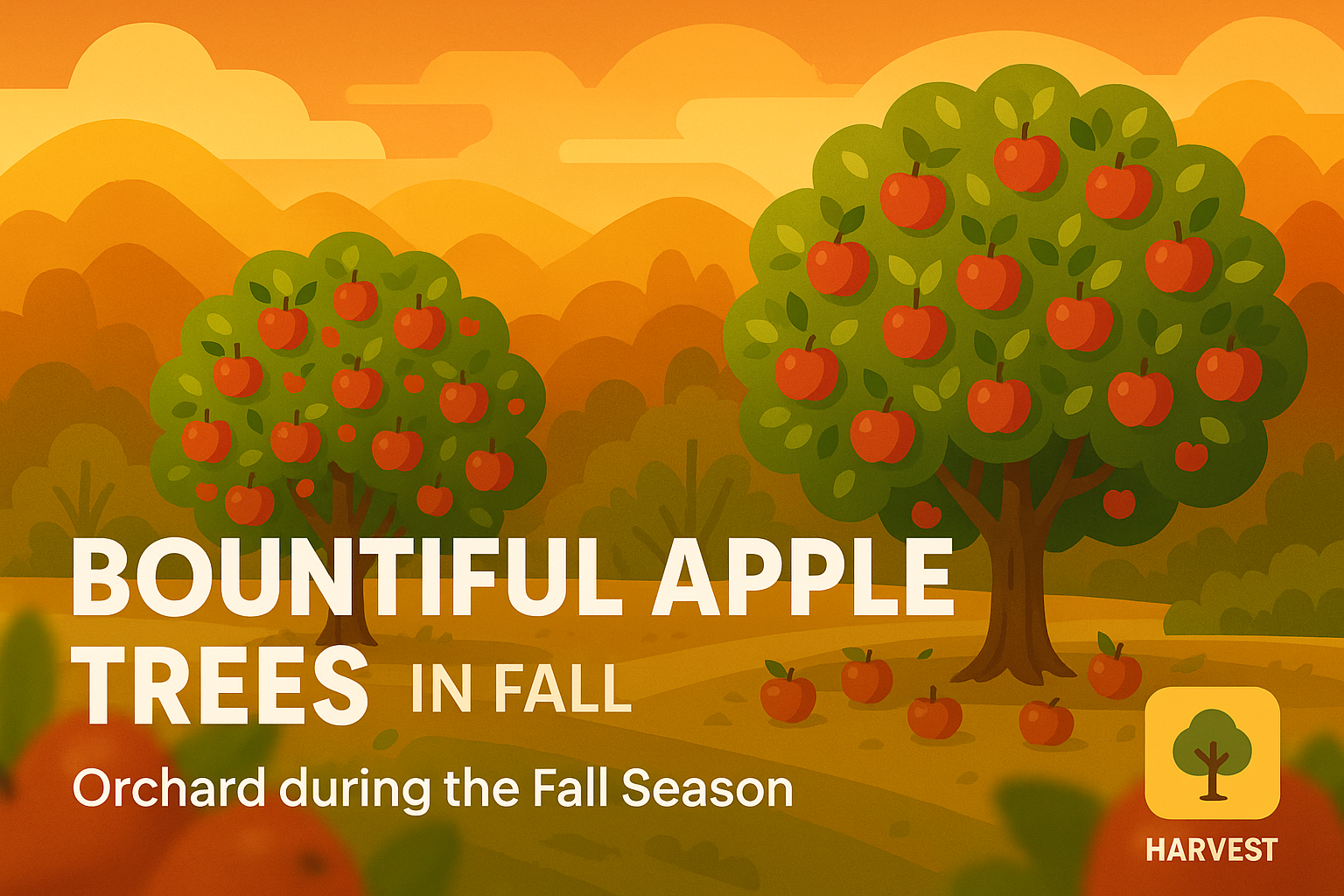 Autumn-Themed Illustration of Apple Trees with Vibrant Colors