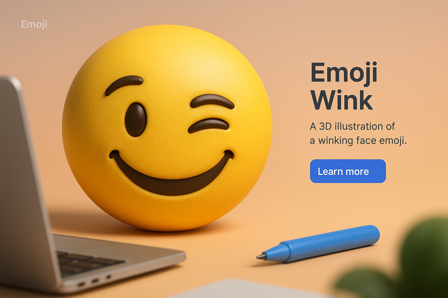 /Collection: /by davooda/Type: PNG/A vibrant 3D illustration of a winking emoji against a soft gradient background. The design features a laptop, a pen, and an action button, creating an inviting interactive interface.