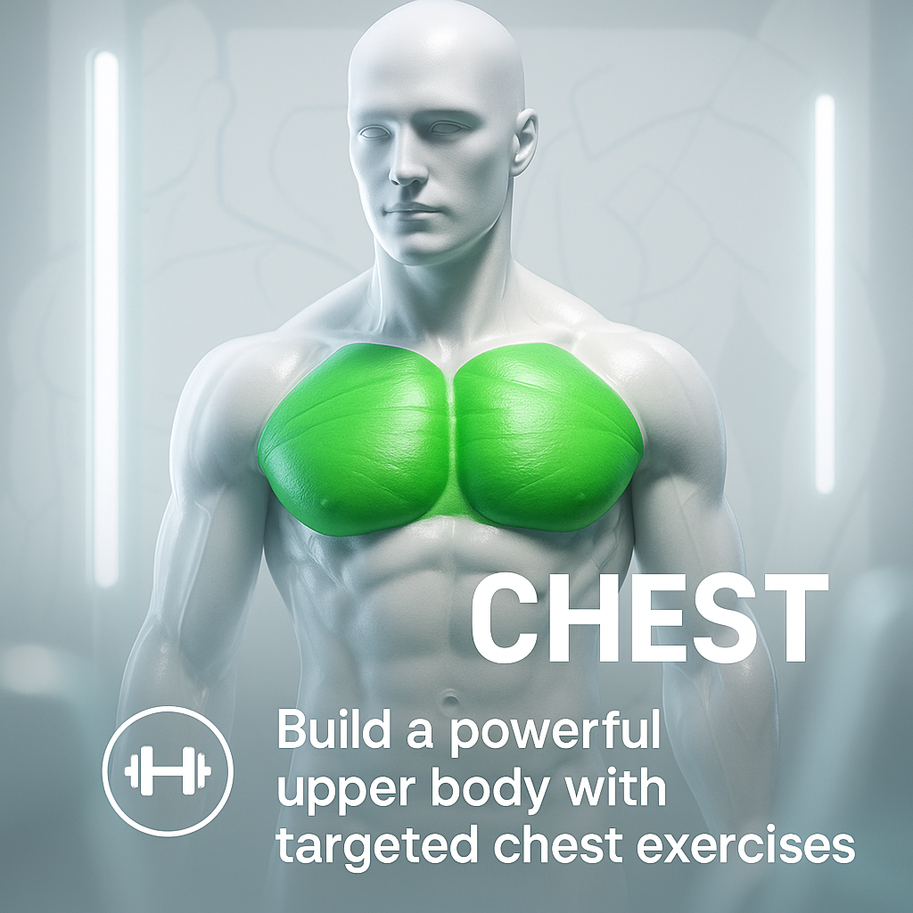 A visually striking 3D graphic illustrating a muscular torso focusing on chest exercises. Ideal for fitness marketing and educational content.