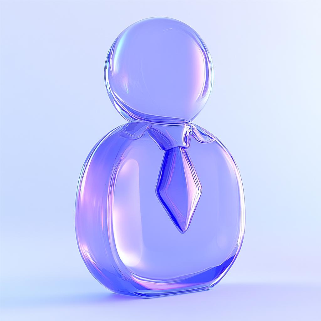 /Collection: /by davooda/Type: PNG/A modern, artistic representation of a businessman in a glass-like form, featuring smooth curves and a subtle tie design. Ideal for corporate branding or artistic displays.