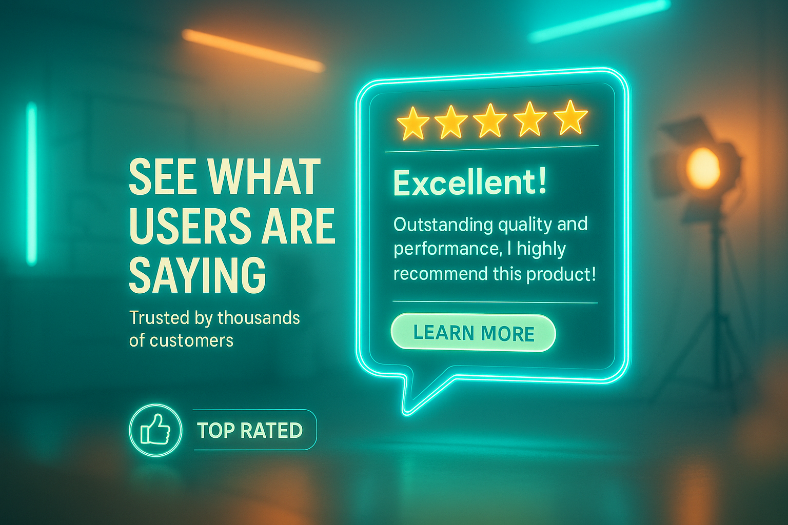Promotional Graphic Highlighting Customer Reviews and Testimonials