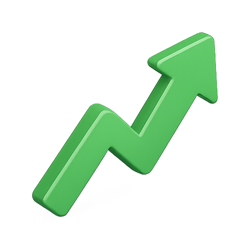 A glossy 3D icon representing an upward trend with a dynamic zigzag design, ideal for financial or performance-related graphics.