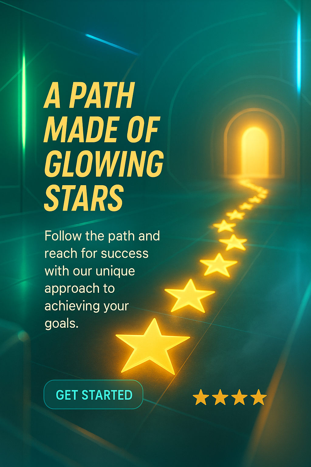A visually engaging motivational graphic featuring a glowing path of stars leading to a bright door, ideal for self-improvement and goal-setting campaigns.