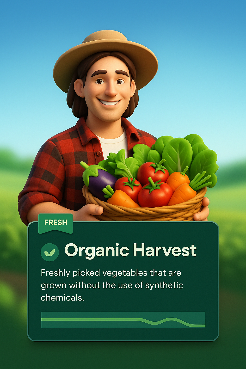 /Collection: /by davooda/Type: PNG/A young farmer holds a basket filled with vibrant, fresh vegetables, symbolizing organic farming. The background features a soft gradient, enhancing the farming theme.